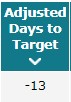 You can toggle between adjusted days to target and adjusted % to target. The setting remains in effect until you change it or log out. Go to User Preferences to make your preference permanent.
