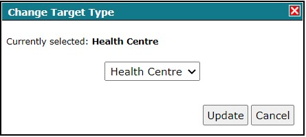 Your Novari ATC administrator may configure different target types for your health center, your LHIN (Ontario) or province. Generally, the provincial targets are used, but your site may have different targets at the health center or LHIN levels. Change Target Type allows you to view your wait list with a different set of target types.
