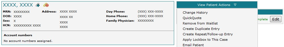 You can perform a number of actions when viewing a patient’s case details. The actions available may vary depending on how your installation was configured.