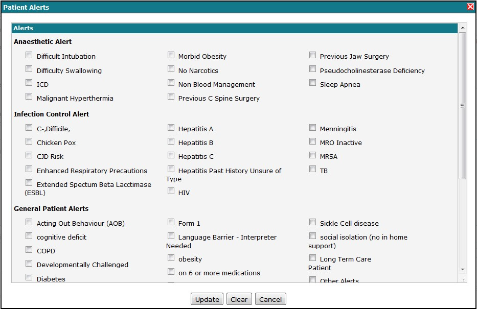 An example of the Patient Alerts window