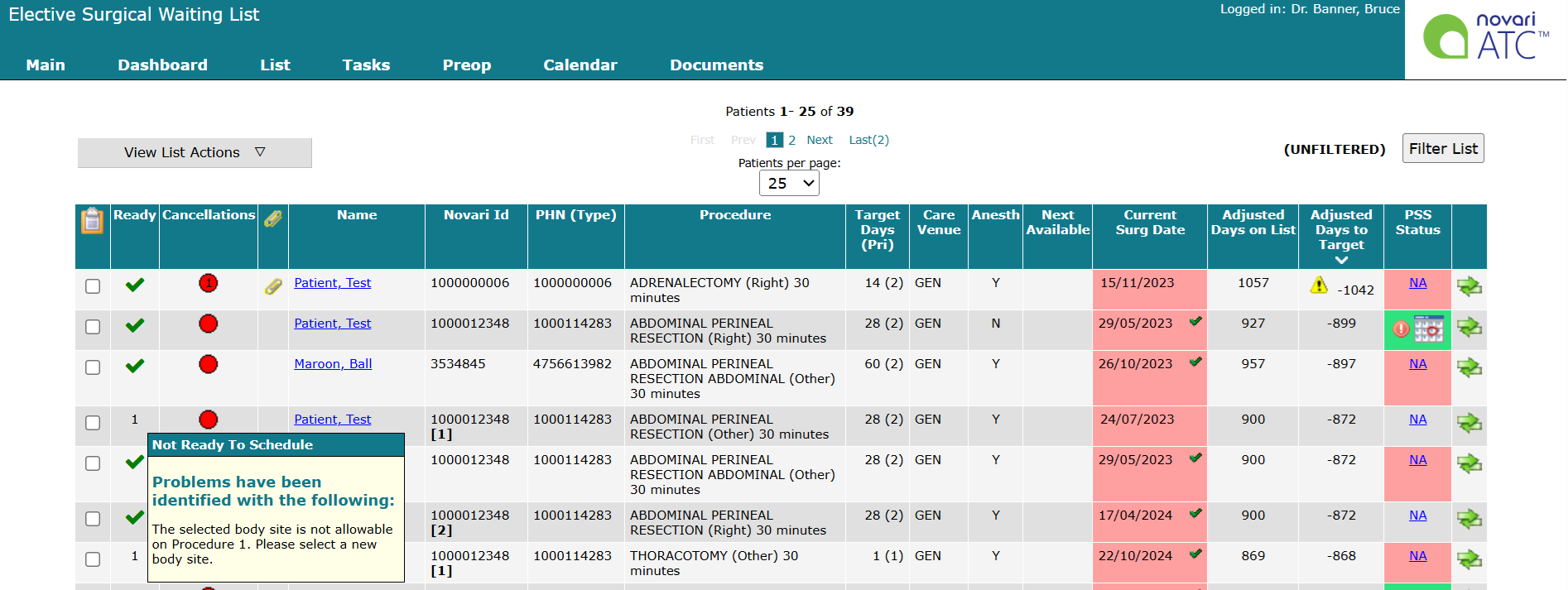 If there are multiple cases not ready to schedule, you will see the cases in order of how many validation errors there are.