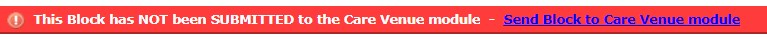 Click the link Send Block to Care Venue Module found in the status bar. You will be notified as to whether the submission was successful.