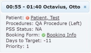This is your list of patients waiting to be scheduled. The list is presented in order by Days to Target (DTT), or Percentage to Target (PTT) if that preference is set in User Preferences, with the cases over target listed first. In other words, the patients who have been waiting longest within their Priority are at the top of the list.