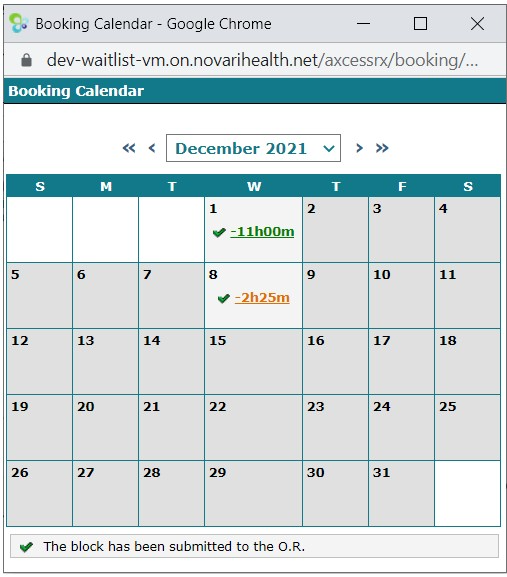 There are multiple visual cues to indicate when a block has been submitted to the OR via the Care Venue module.