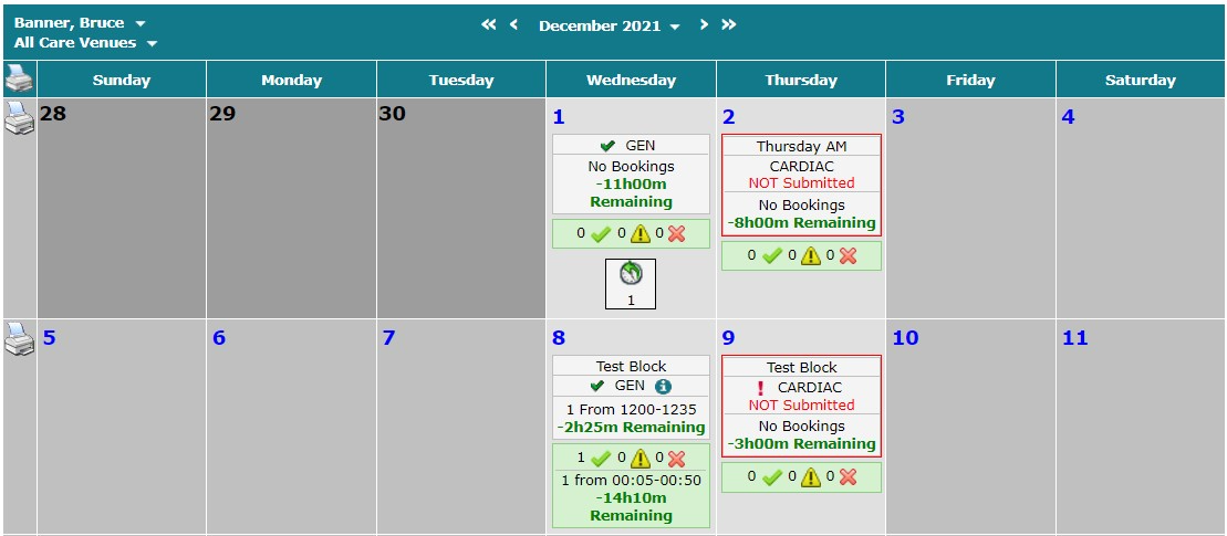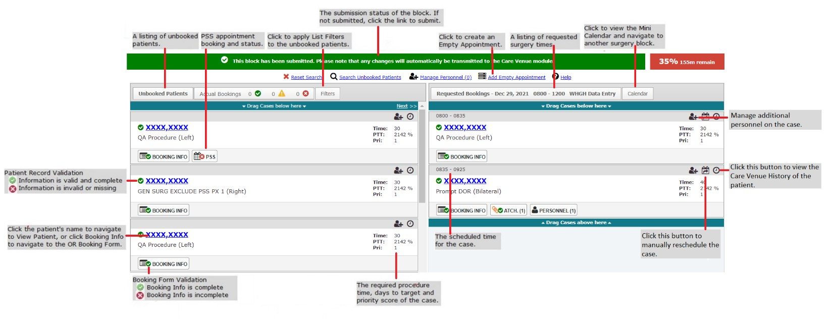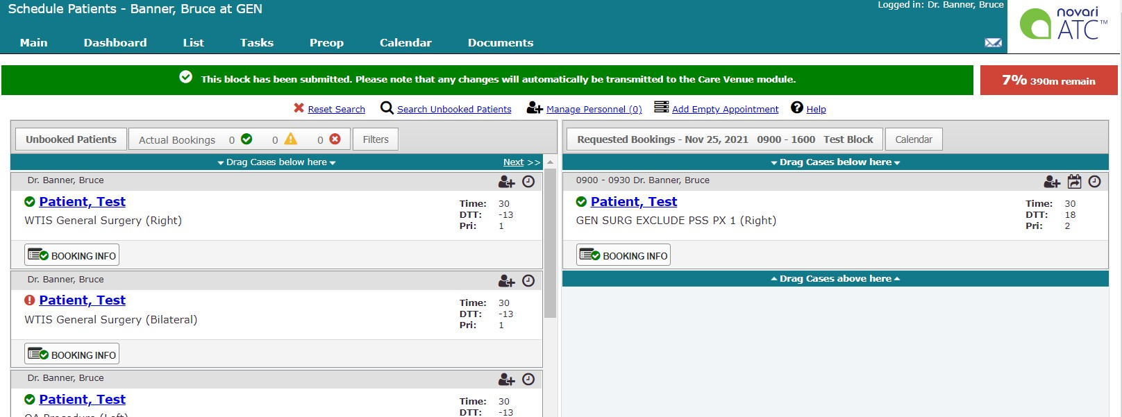 In the Scheduler, the status bar at the top of the page will indicate whether that surgery block has been sent to the Care Venue module.