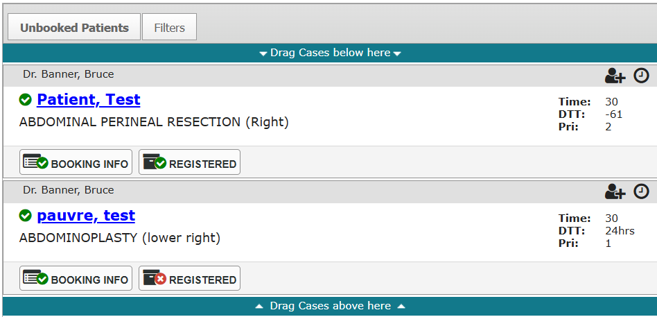 In Provider’s Office Calendar, when using Compactor mode, you will see a new badge on each case that indicates if the patient is registered, that is, the patient is registered with the hospital. For many clients, this would be the patient’s MRN, although different hospital information systems may use a different number for registered patients.