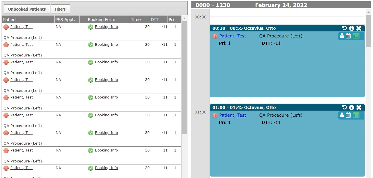 Drop the patient on the Requested Booking list at the exact time you would like to begin the procedure.