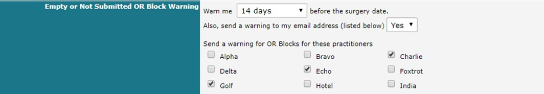 In Novari ATC, each user is given the option to choose how many days before a surgery date they would like to be warned, if they would like a warning sent to their email address, and for which providers they would like to receive these warnings.
