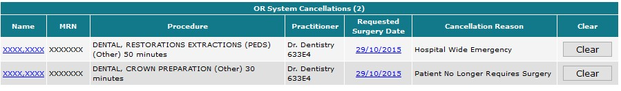 OR System Cancellations on the Case Cancellations page