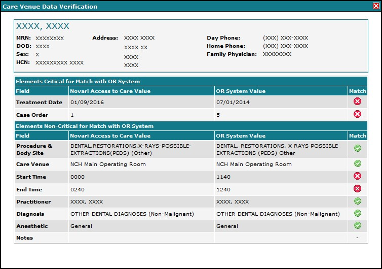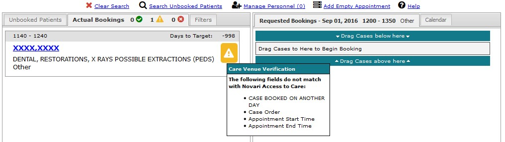 You can select any of the icons to bring up a detailed comparison between Novari ATC Requested Bookings and the actual OR system. This can be seen on the next page.