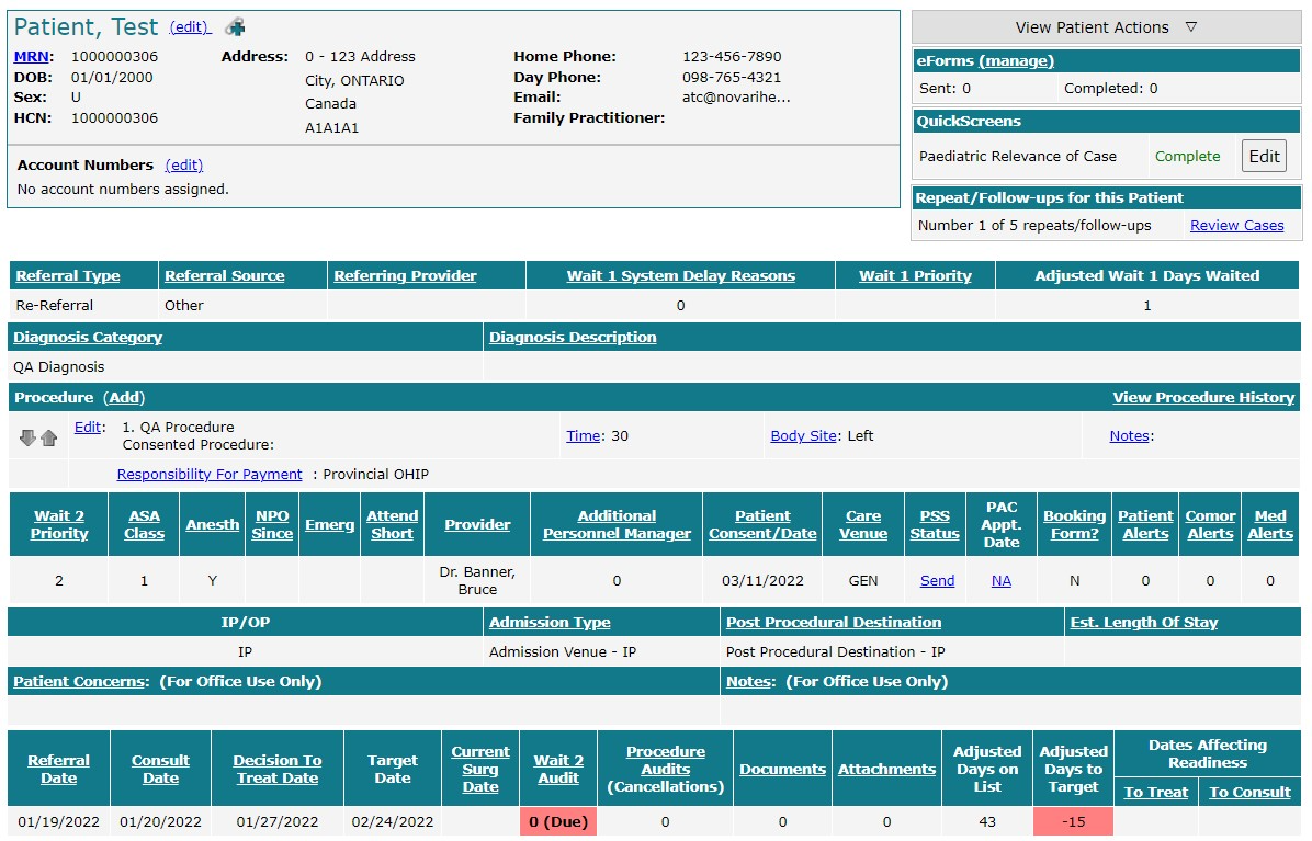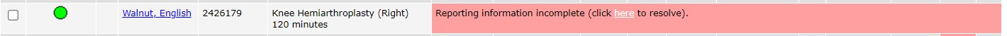 UNTIL REQUIRED REPORTING INFORMATION IS SUPPLIED FOR A GIVEN CASE, YOU WILL NOT BE ABLE TO BOOK THE CASE TO A SURGERY DATE, OR OTHERWISE MODIFY THE CASE.