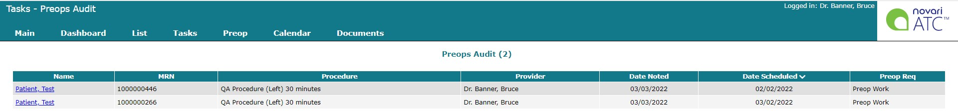 Tasks, formerly known as Pending Audits, are items you need to acknowledge or act on. Novari ATC does not always update patient records automatically; sometimes it requires an authorized user, such as a medical office assistant, to make the changes.