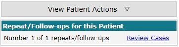 Select Review Cases in the Repeat/Follow-ups for this Patient section under View Patient Actions.