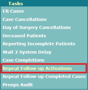 Select Repeat Follow-up Activations from the Task menu in the Provider’s Office navigation menu.