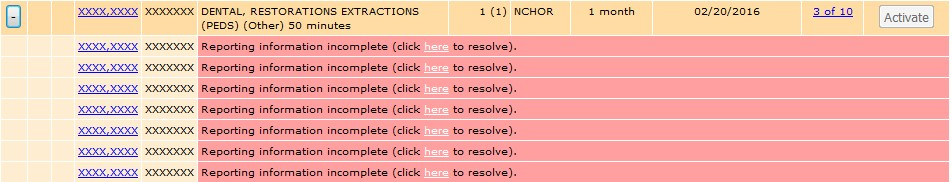 Cases that are not manually activated to the wait list may automatically be activated on the date listed on the entry as long as the previous case has been booked for surgery. It is recommended that any Repeat/Follow-up series whose interval is less than 3 weeks should be considered for manual activation. When a case has been activated to the wait list, the case can be booked. When it is booked outside of the Date Activated and the Latest Date, the surgery date will be coloured in red.