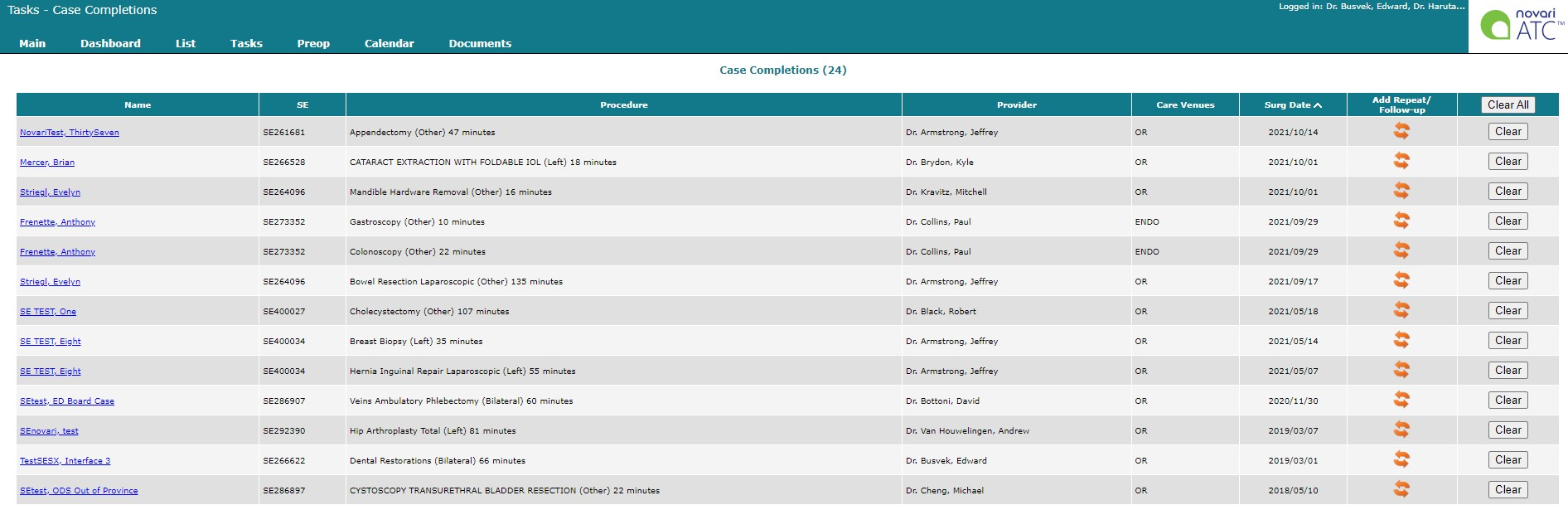 From the Tasks > Case Completions page select the orange Repeat/Follow-up icon.