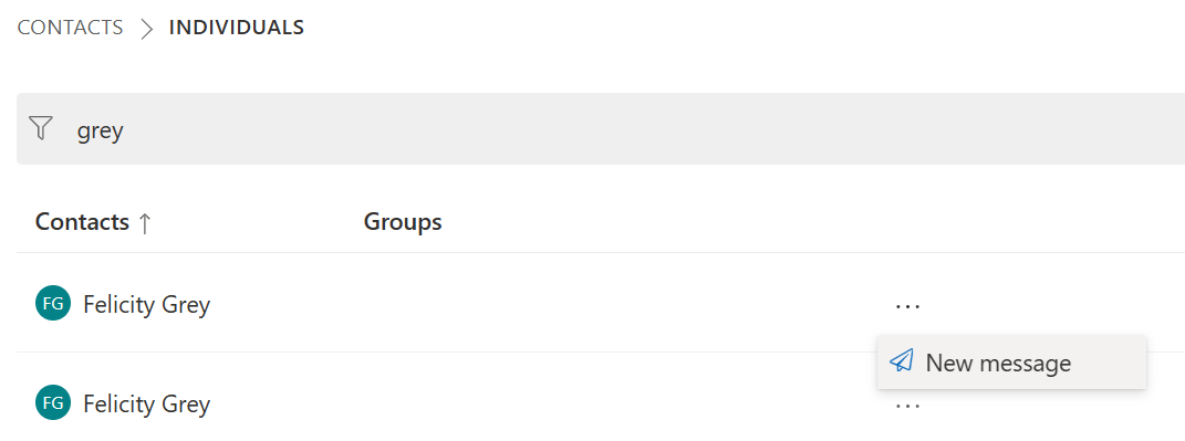 Alternatively, start typing a few letters of an individual or group name. The list of contacts will filter as you type.