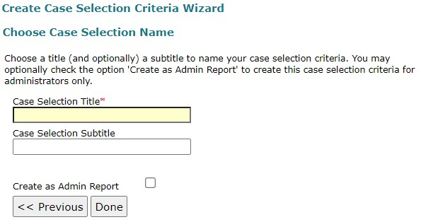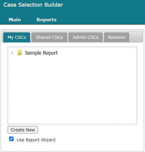 To create a Case Selection Criteria, on the Reports – Dashboard page, select Case Selection Criteria. This opens the Case Selection Builder.