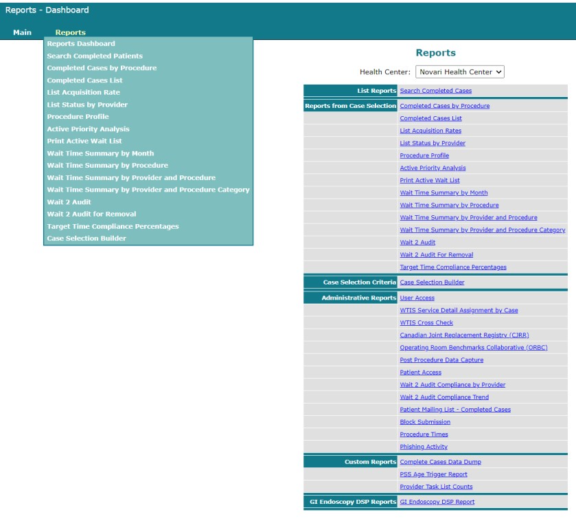 The reports provided with Novari ATC are a sampling of what is possible to report on. Novari Health can produce custom reports for clients. Ask your site administrator to contact Novari Health.