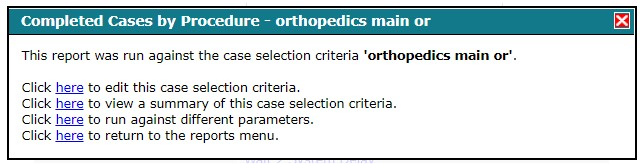 The dialog that appears when Completed Cases by Procedure report is generated and outputted to Excel.
