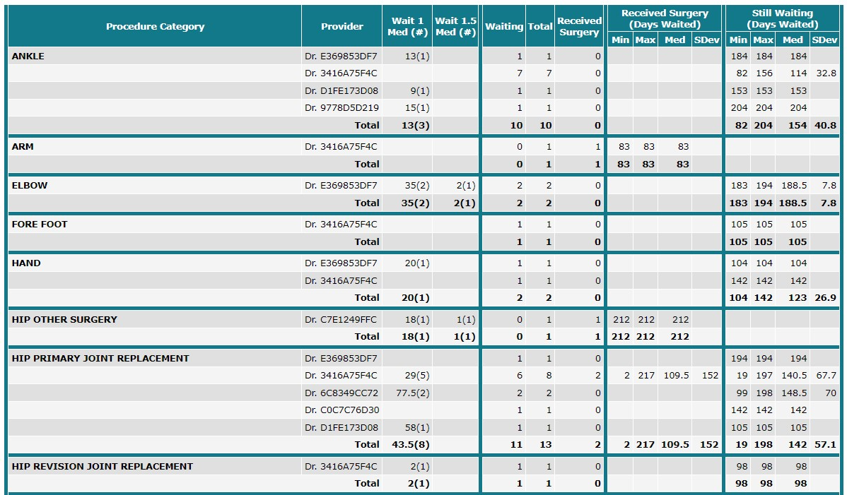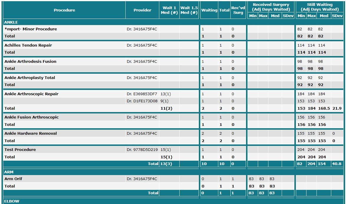 Wait Time Summary by Provider and Procedure