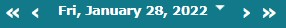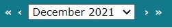 Navigate from month to month using the single chevron beside the current month. Navigate from year to year using the double chevron beside the current month. Use the list of months to navigate to a specific month in the current year.