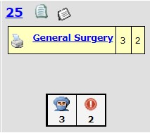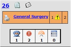 For sites with the scheduling interface implemented, the warning icon indicates that there are cases not yet scheduled in the OR.