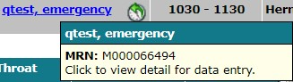 In the search results, click a patient name to open the Care Venue Data Entry screen for that patient.