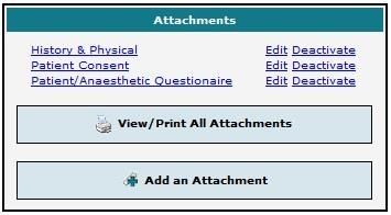 The Care Venue Data Entry page lists all existing attachments for the case. These attachments can be added by any user with access to the case – in Provider’s Office, Pre-Surgical Screening, or Care Venue modules.