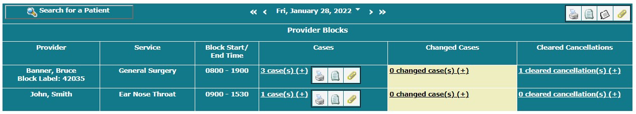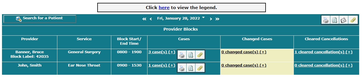 By default, you see the surgical blocks for the current month.