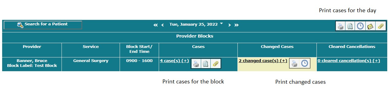 Click the Print Cases for the Day icon.