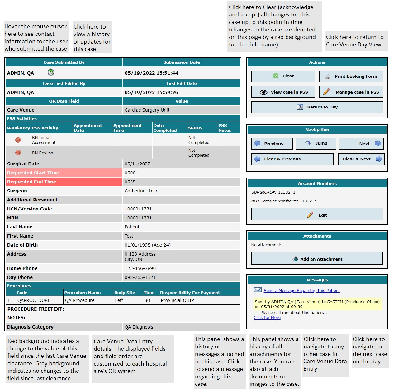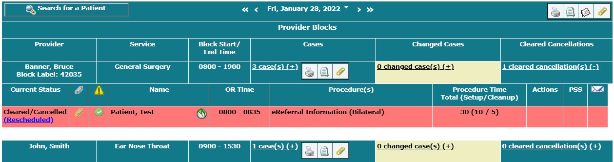 This is displayed in Provider’s Office to inform the Medical Office Assistant that the case has been scheduled. Scheduling messages concerning that case are sent from the ORIS to Novari ATC, such as changes to the surgical date or time and cancellations.