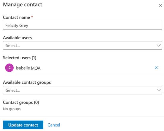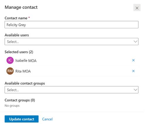 Similarly, Isabelle used to work for an orthopaedic surgeon, Dr Brown, in another clinic. She was recently hired to work with Rita. Isabelle used to manage Dr Brown’s messages. She was removed from that contact and given access to the two surgeons’ contacts in Rita’s office.