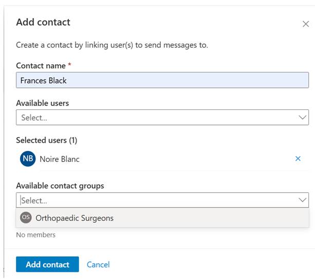 Add Felicity Grey and Dr Black as contacts and add Rita as the user to each. Rita can read and respond to messages sent to either Dr Black or Felicity Grey.
