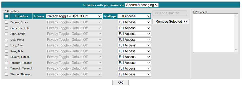 2. You can add the Secure Messaging application to each provider group that needs it.