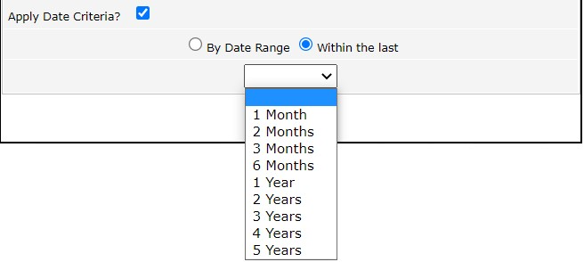 If no date criteria are set, it defaults to the last 12 months.