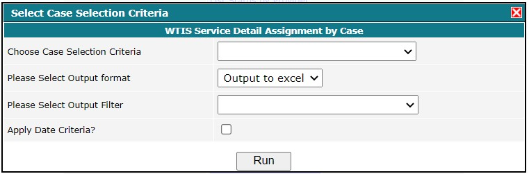 To generate the WTIS Service Detail Assignment by Case report: