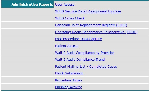Note: you may not have all these Administrative Reports if you do not participate in CJRR or ORBC.