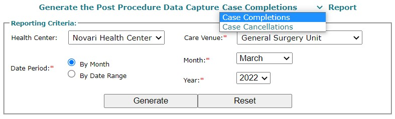 Select Case Completions or Case Cancellation from Report.