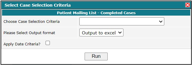 Select Patient Mailing List – Completed Cases from Administrative Reports on the Reports Dashboard.