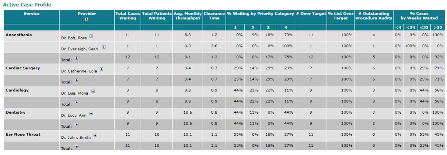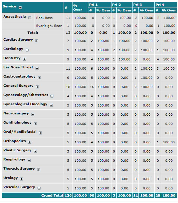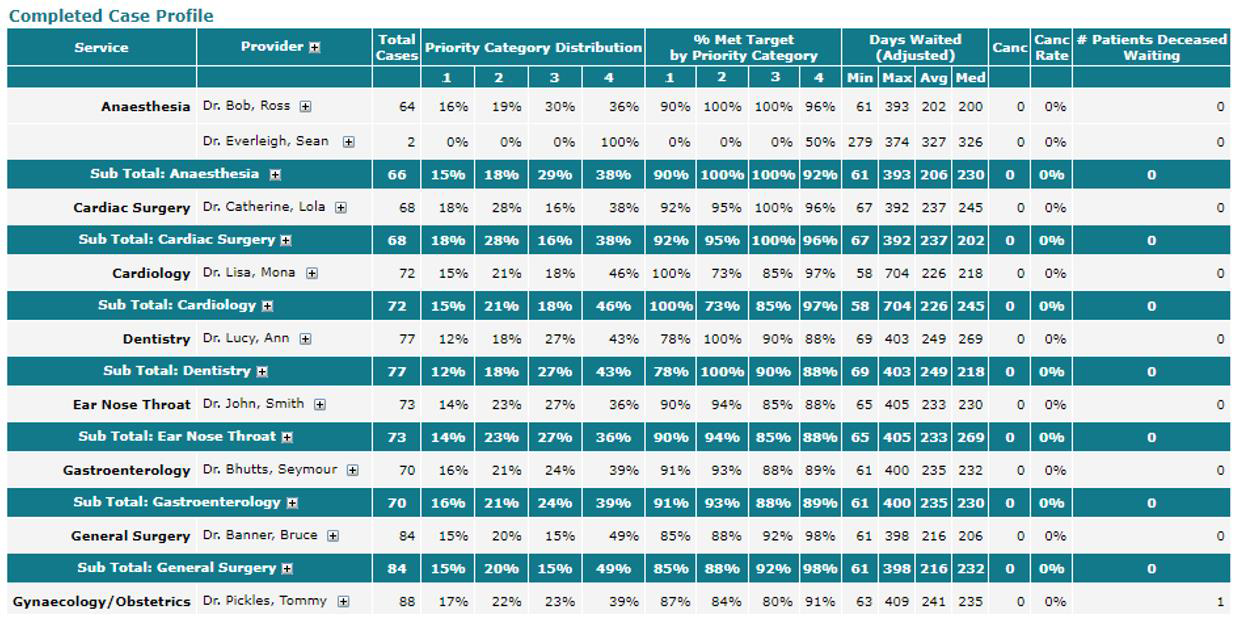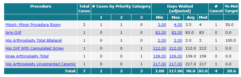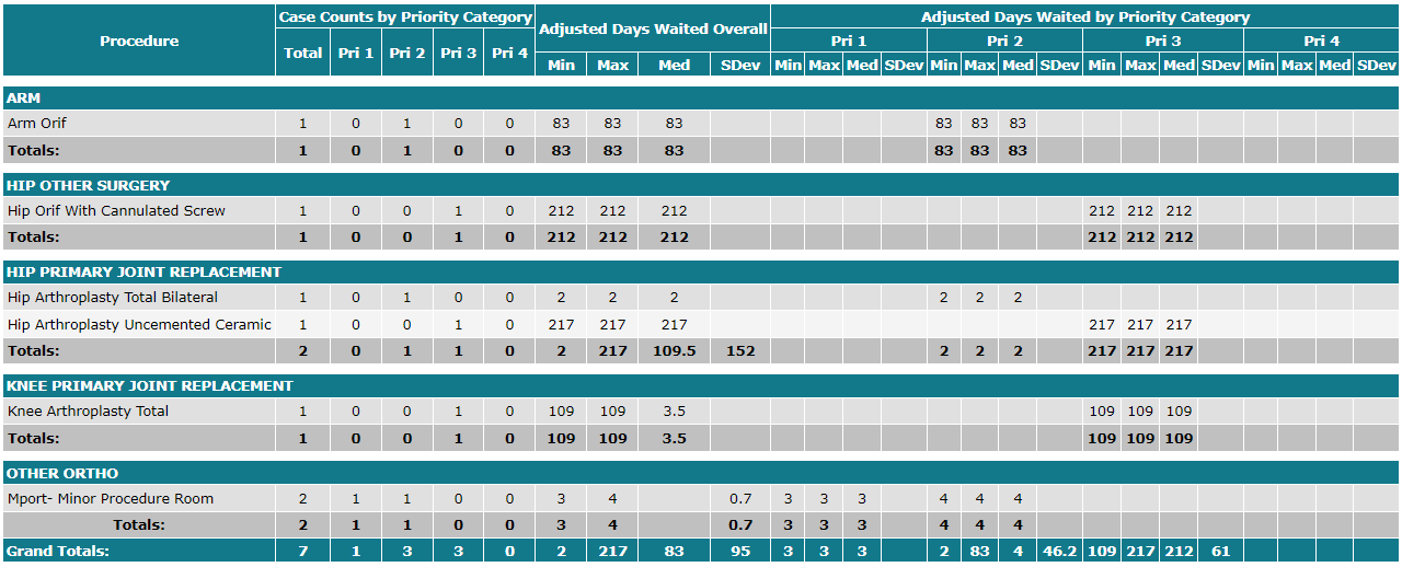 The first section of the Procedure Profile report uses the priority categories to group the sections – this is for Wait 2.