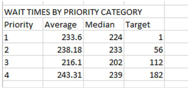 This is for Wait 2. Please note there are only values for Priority Categories 1, 2, and 3.