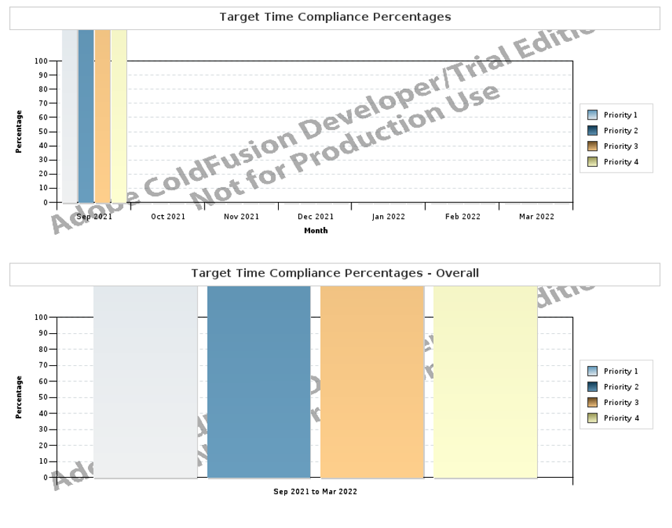The Target Time Compliance Percentages report groups by priority categories – this is for Wait 2 only.